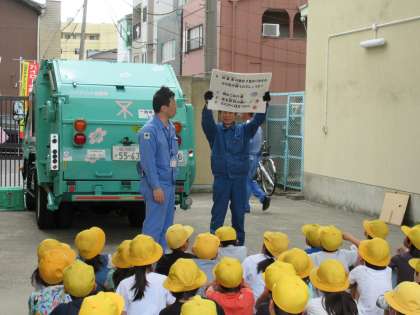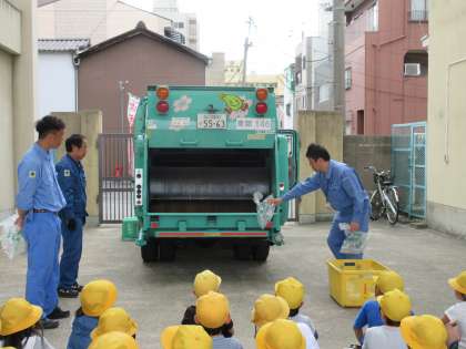 今日4年生は社会の授業でパッカー車に来ていただいて、いろいろとお話を聞きました。