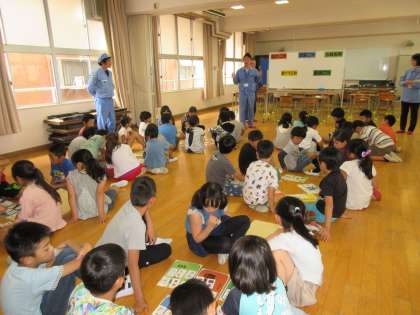 3時間目は多目的室に移動して、ごみの分別について教えていただきました。