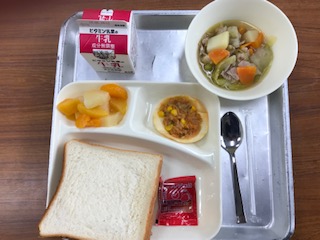5/20 今日の給食 豚肉と野菜のスープ煮