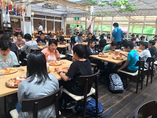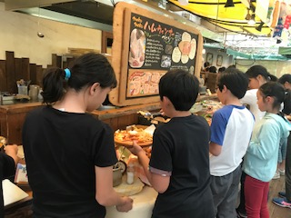 各自、自分で好きなメニューをお皿にとります。みんなで楽しく、美味しくいただきます。