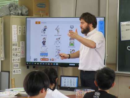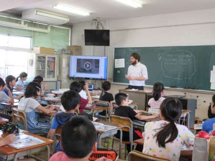 今日は金曜日なので、C−NETのジェームス先生と藤井先生が来てくださっています。6年生は英語を聞いてどんな会話がされていたか聞き取る学習をしています。