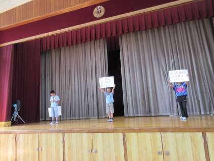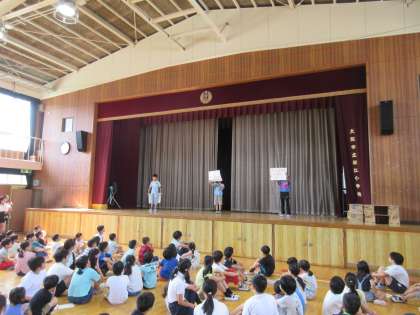 教頭先生のお話の後は、代表委員会の紹介でした。クイズ形式でわかりやすく紹介していました。