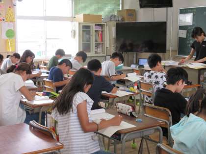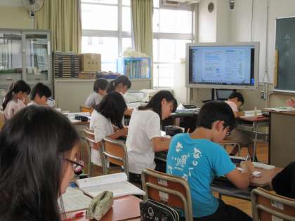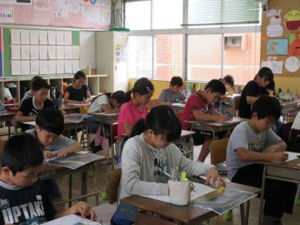 5年生は図工で校舎の絵をかいています。先日タブレットで撮った写真をもとに描いています。
