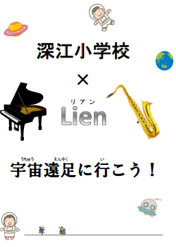 辻浩二先生とアンサンブルユニット「Lien」のみなさんに来ていただき、「宇宙遠足にいこう」という題で授業をしていただきました。