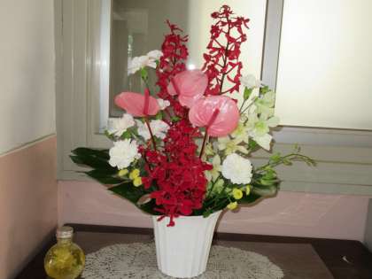 下の写真は校長室前に置いていただいたアレンジフラワーです。