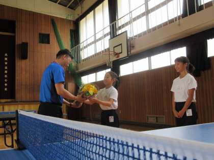最後に6年生の代表がお礼のあいさつをして、花束を贈りました。