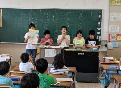 今日は朝の会の時間に給食保健委員会のメンバーが2年生に手洗いについて教えてくれました。今日からしっかり手洗いしましょう。