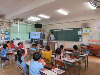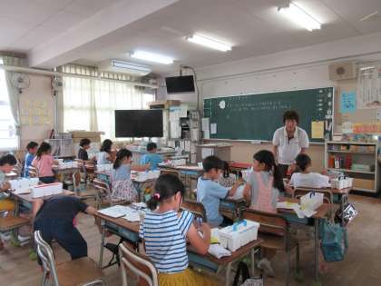 1年生の算数、2年生の図工、6年生の社会の学習の様子です。みんなそれぞれ、集中して学習や作業に取り組んでいます。