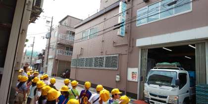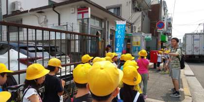 説明を聞いて出発し、郵便局、ナニワ製作所とまわっていきました。回ったところがよくわかるようにタブレットで写真をとりました。