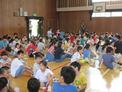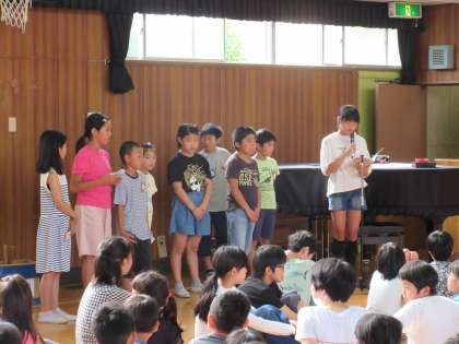 集会では「新しく来られた先生の紹介ゲーム」をしました。先生方の趣味など出題されました。