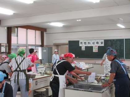 深江小学校の家庭科室で「東成区食生活改善推進員協議会」の方々による男性料理教室が行われました。