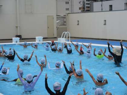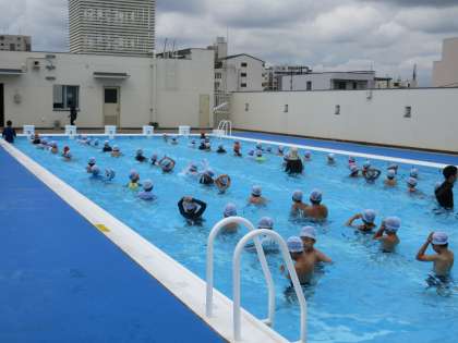 1・2年生の「水遊び」の様子です。今週から1・2年生は一緒に体育の学習をしています。少し日差しが少ないですが、元気に楽しく水慣れをしています。