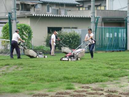 芝刈りをしながら、芝を刈っていくことでより元気な芝になることや、芝は広がっていくことを教えていただきました。