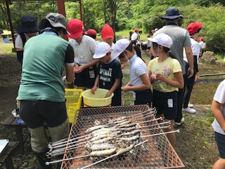 つかんだ魚はくしをさして塩をふって焼いていただきました。