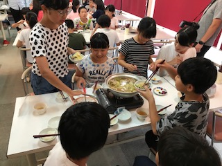 今日の献立はかもなべです。みんなわいわい楽しくいただきます。