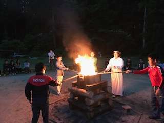 火の神から火を授かり、キャンプファイヤーが始まりました。
