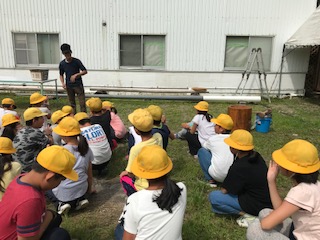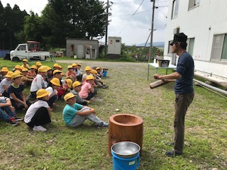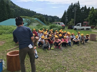 餅つきの仕方を教えていただき、クラスごとに1臼ずつ餅つきをします。