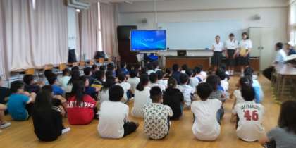 毎年クラブ体験ということで中学校にお世話になっていますが、今年は体育館の建て替えということで小学校に来ていただいて、説明会をしていただきました。