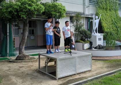 給食・保健委員会の代表が全校朝会で9月の保健目標を発表しました。