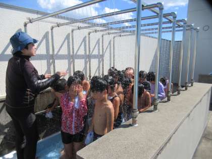 毎日暑い日が続きますが、今週で体育の水泳学習は終了します。昨日は5・6年生が、今日は1年生から4年生までが最終の水泳学習になります。