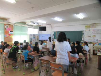 今日は誕生日を伝えることで、12の月の言い方を練習しています。自分の誕生月をいう時には立ち上がって言っています。