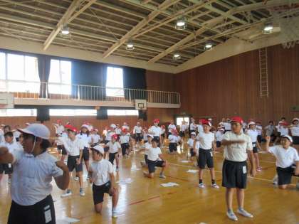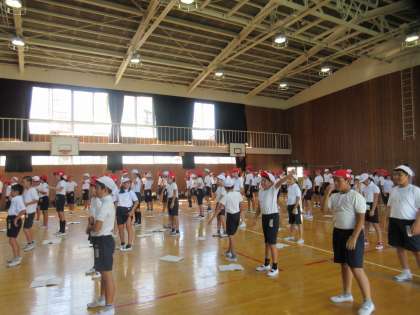 昼からは5・6年生が運動会の練習をしています。今日練習しているのは、団体演技のダンスのパートのようです。