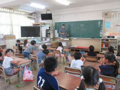 2学期になって初めて2年生のが外国語学習でマット先生に来ていただきました。