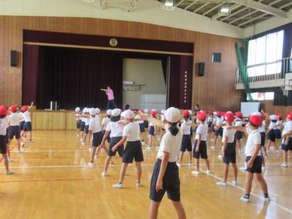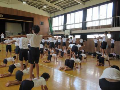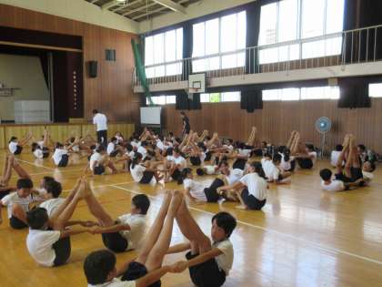 各学年1時間ずつですが、講堂で体育の学習が行われました。