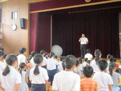 まず、教頭先生と朝の挨拶をしました。「敬老の日」についてのお話を聞きました。