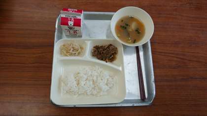 献立:プルコギ,トック,もやしの甘酢あえ,ごはん,牛乳