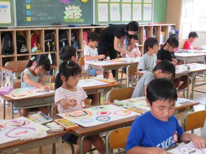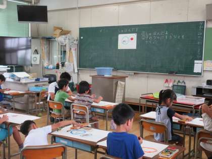5年生の社会科の学習の様子と1年生の図工の学習の様子です。