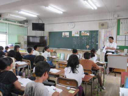 今回は山本教頭先生が授業をされて、道徳の授業の研修としています。みんなしっかり考えて意見を発表しています。