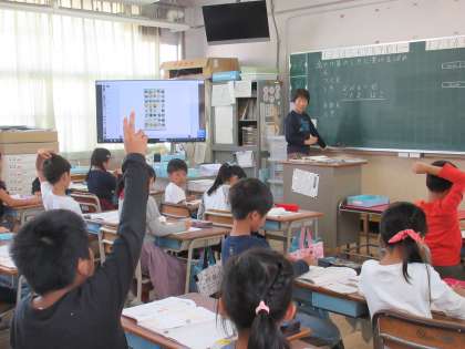 2年生の学習の様子です。算数の「かけざん」と国語の学習の様子です。