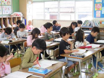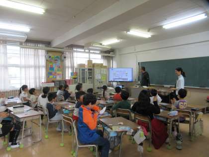 1年生の算数の学習の様子と3年生の外国語学習の様子です。しっかり集中できています。