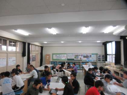 6年生の理科の学習でした実験の様子をグループごとに「フローチャート」まとめています。(プログラミング学習)