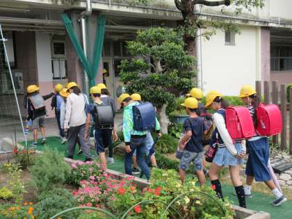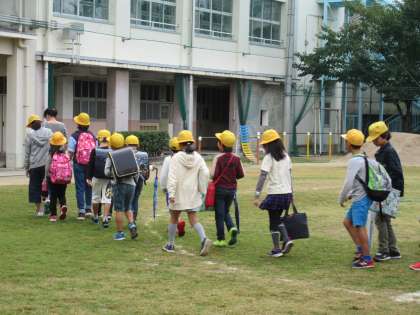 運動場から各町会ごとに決まっている避難場所の教室に移動しました。
