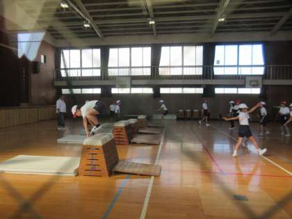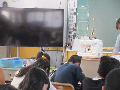 家庭科ではミシンを使って学習するため説明を聞いています。