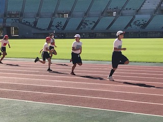 トラックを使って練習の後100メートルに挑戦です。気持ちよく走りきることができました。