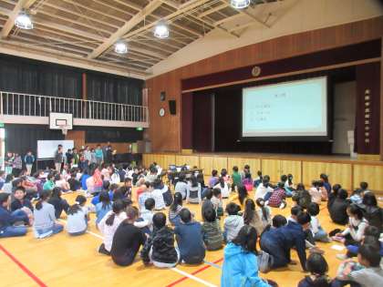 オリンピックにまつわる楽しいクイズをしてくれました。縦割り班で協力して考えました。