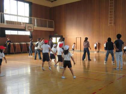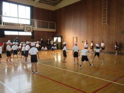 PTAの学級委員会の方々にお世話になり、「親子ドッジボール大会」を計画していただきました。子ども対子どもの試合や子ども対保護者の試合も計画していただきました。みんな楽しいひと時を過ごしました。