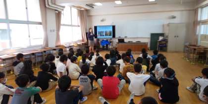 今日は校長先生から、深江の誇り「すげ」「茶釜」「かがみ」のお話を聞きました。