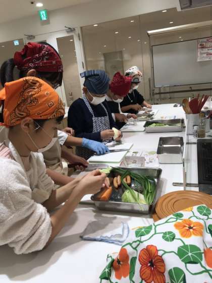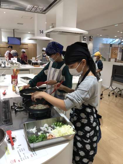 実習開始です。今日の献立は「ごはんとみそ汁、野菜いため」です。