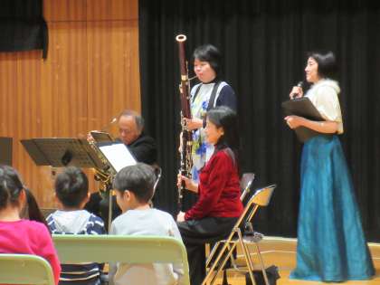 木管5重奏ということで、楽しく楽器紹介をしていただきました。それぞれの学期にピタリの曲を演奏していただきました。
