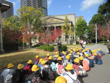 まず、建物の様子を外側から見ながら説明をしていただきました。とても歴史ある建物で感心することばかりでした。