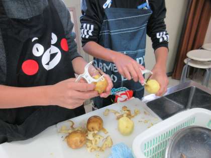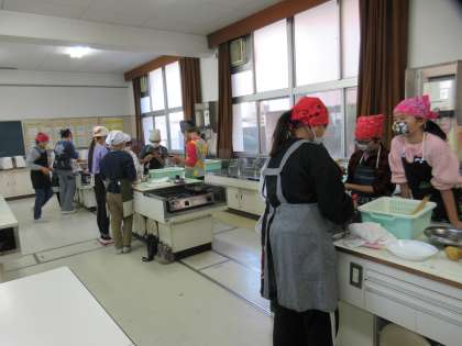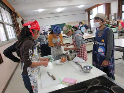 6年生の家庭科の学習の様子です。今日は調理実習でじゃがいもと卵の料理を作っています。出来上がりが楽しみですね。