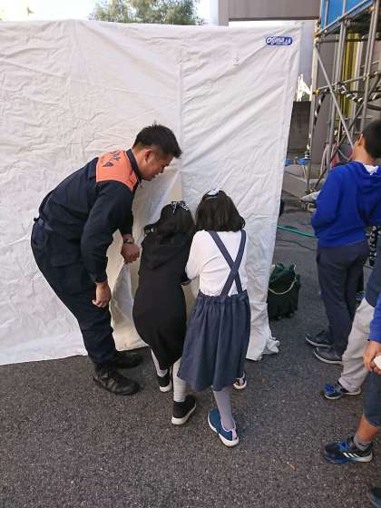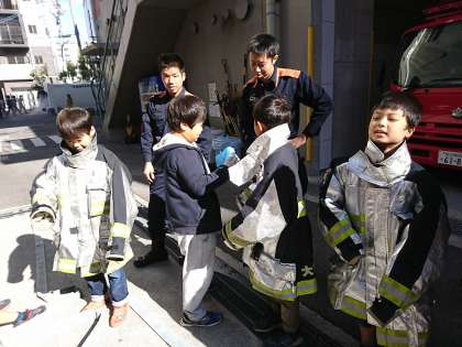 消防士さんの服を着たり、けむり体験をしたり様々な体験活動をさせていただきました。ありがとうございました。