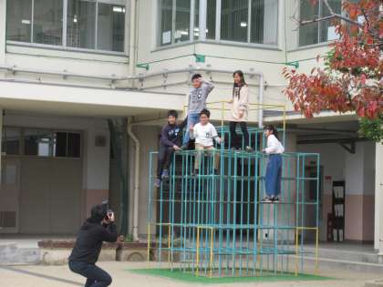 今日は写真屋さんに来ていただいて、グループ写真と個人写真の撮影をしていただきました。個人写真は多目的室にスタジオを作っていただき一人ずつ撮影していただきました。
