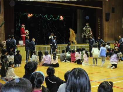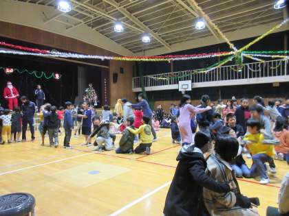 今日は深江小学校の講堂で、深江青少年指導員会・深江青少年福祉委員会・深江子ども会の主催で「深江子どもクリスマス会」が行われました。