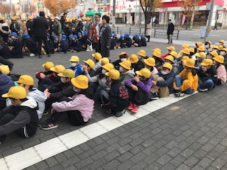区民ホールまでは歩いて出かけました。東成区の6年生が集まって学習会が行われます。