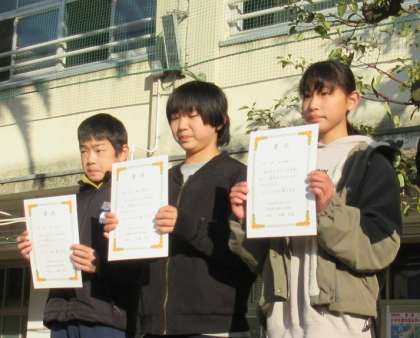 朝礼で名前を読み上げてみんなから拍手をもらいました。6年生のチャンピオンが全校のチャンピオンの代表として賞状をいただきました。